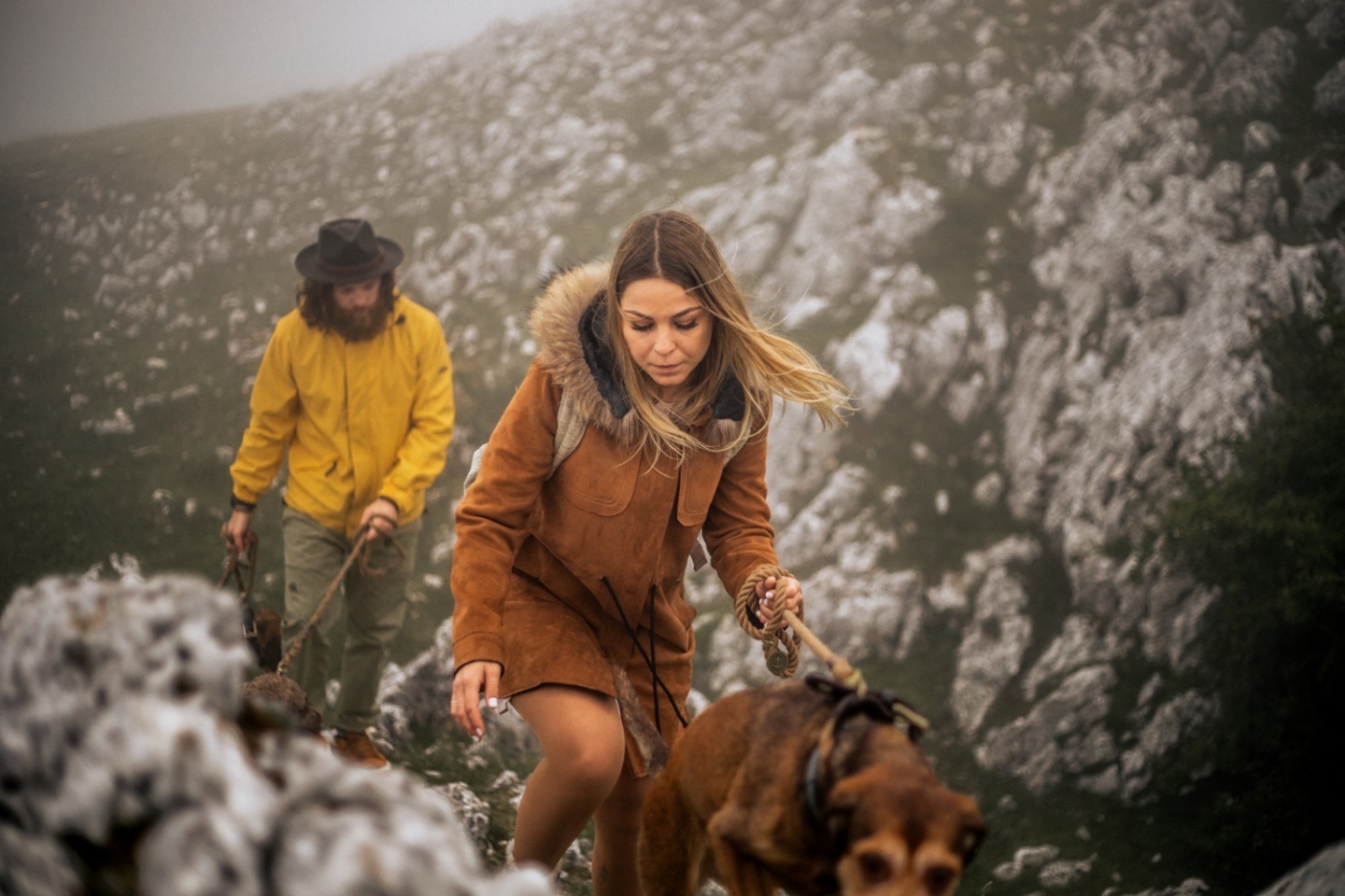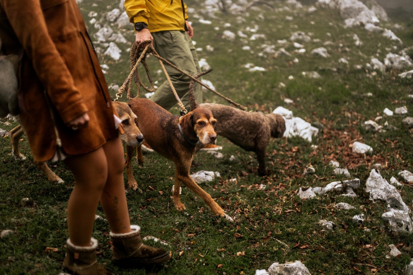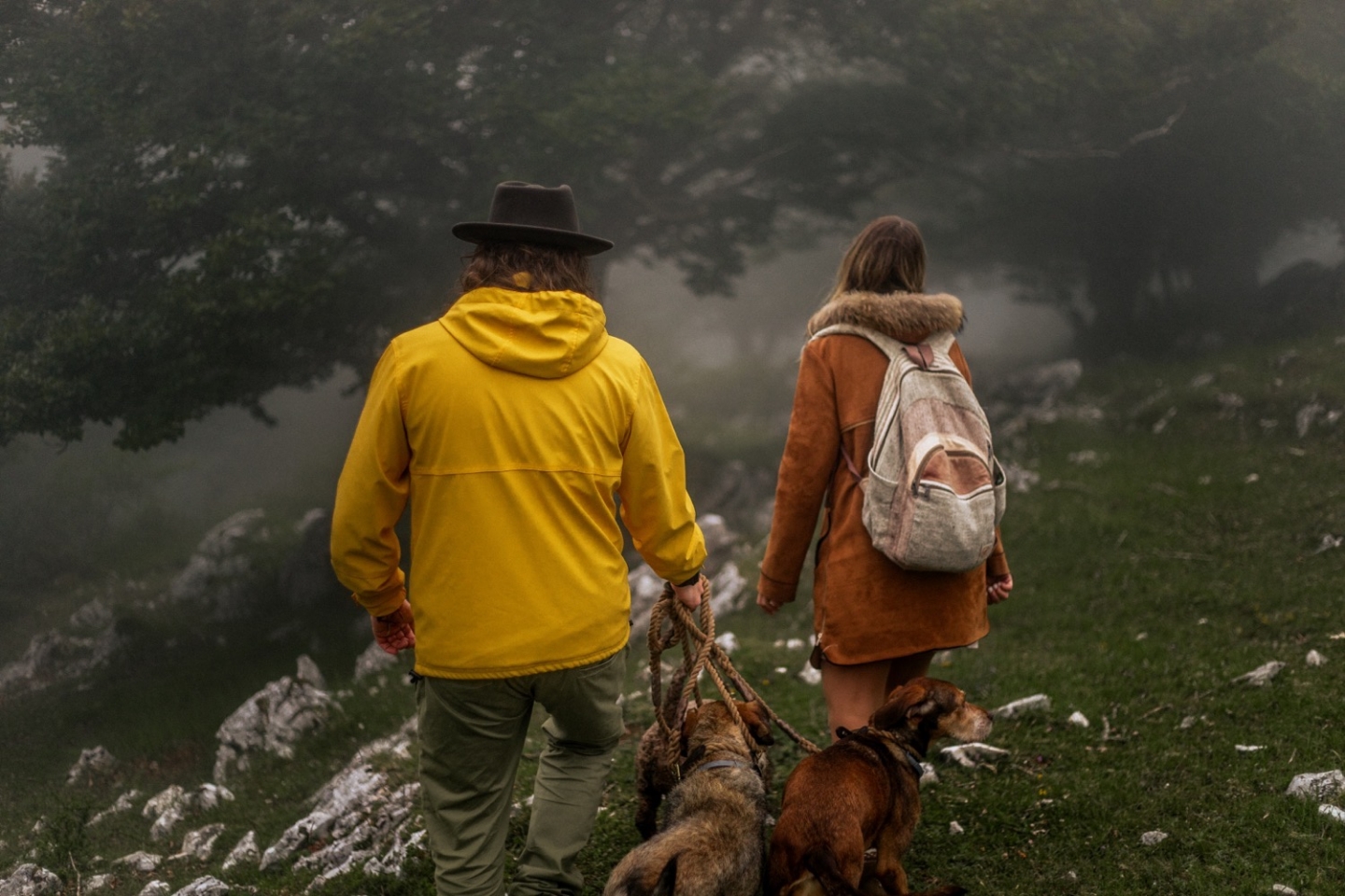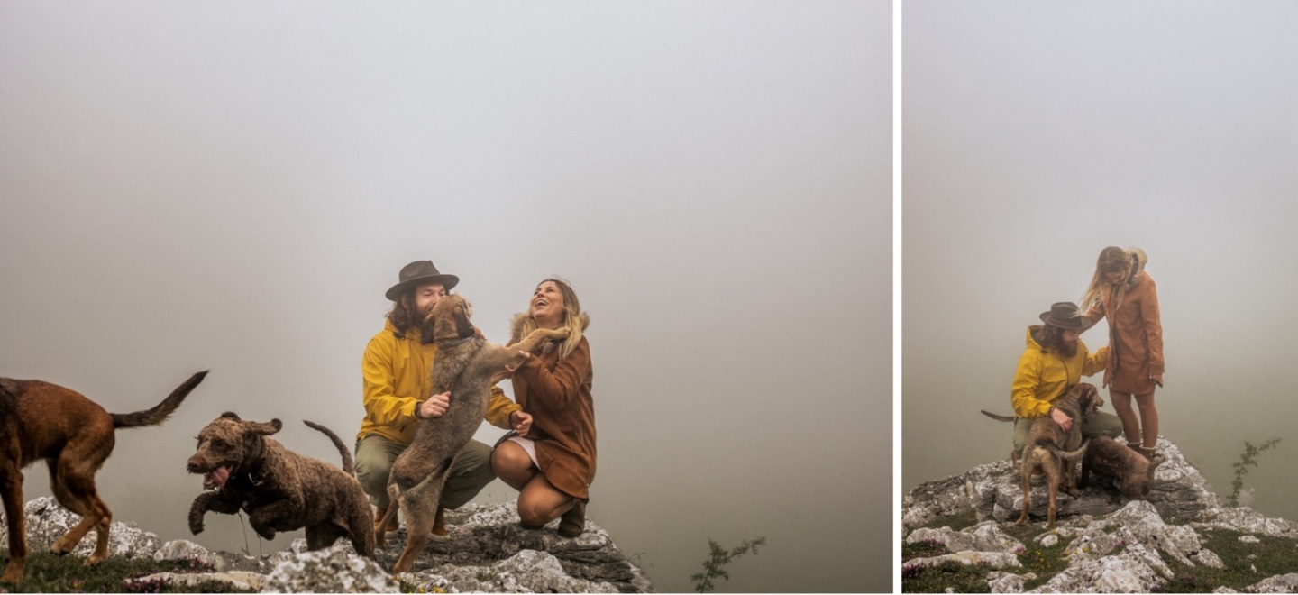 Como fotógrafos de boda en el norte, nos encanta buscar diferentes localizaciones, y la verdad es que vamos mucho al monte. Nos apasionan los paisajes que tenemos en el país vasco. Nos fuimos a una montaña a medio camino entre nuestra casa y la suya, entre Navarra y Gipuzkoa, y fué un acierto total, ya que así los tres pequeños de la pareja pudieron corretear todo lo que quisieron y más. Nosotros también tenemos perro, asique disfrutamos como enanos jugando con ellos y fotografiándolos.